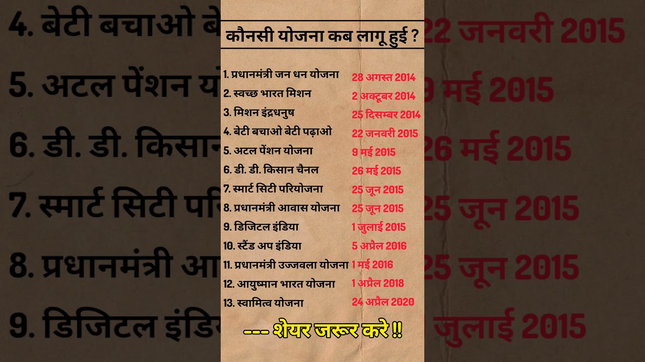 कौन-सी योजना कब लागू हुई #government scheem #yojna2023 #new schemes #scheme #सरकारी योजनाएँ # shorts
